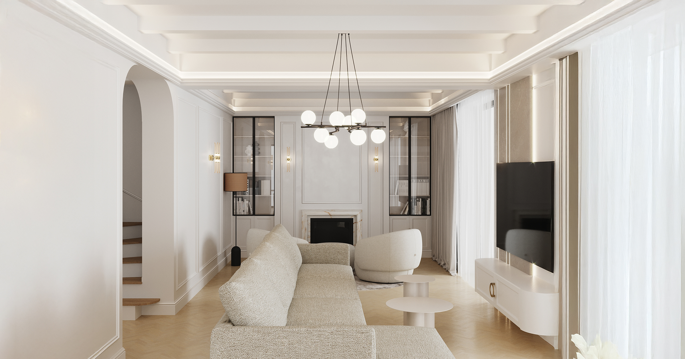 Wysokie sufity aż proszą się o oświetlenie warstwowe. To sposób na połączenie kilku źródeł światła: mocnej lampy centralnej, kinkietów na ścianach, nastrojowych lampek nocnych i funkcjonalnej lampy podłogowej. Dzięki temu wnętrze jest równomiernie doświetlone, a jednocześnie zyskuje przyjemny, domowy klimat.