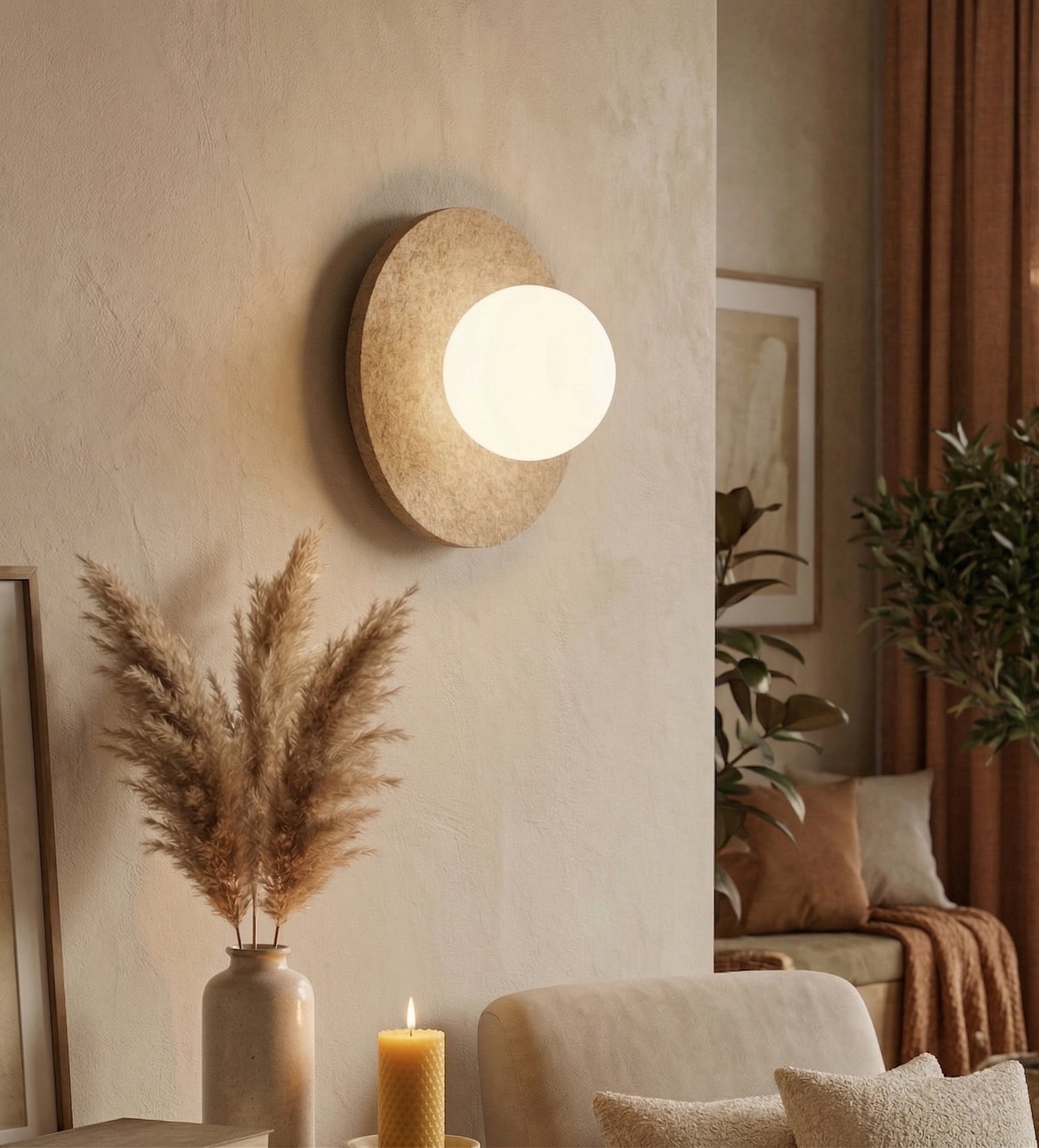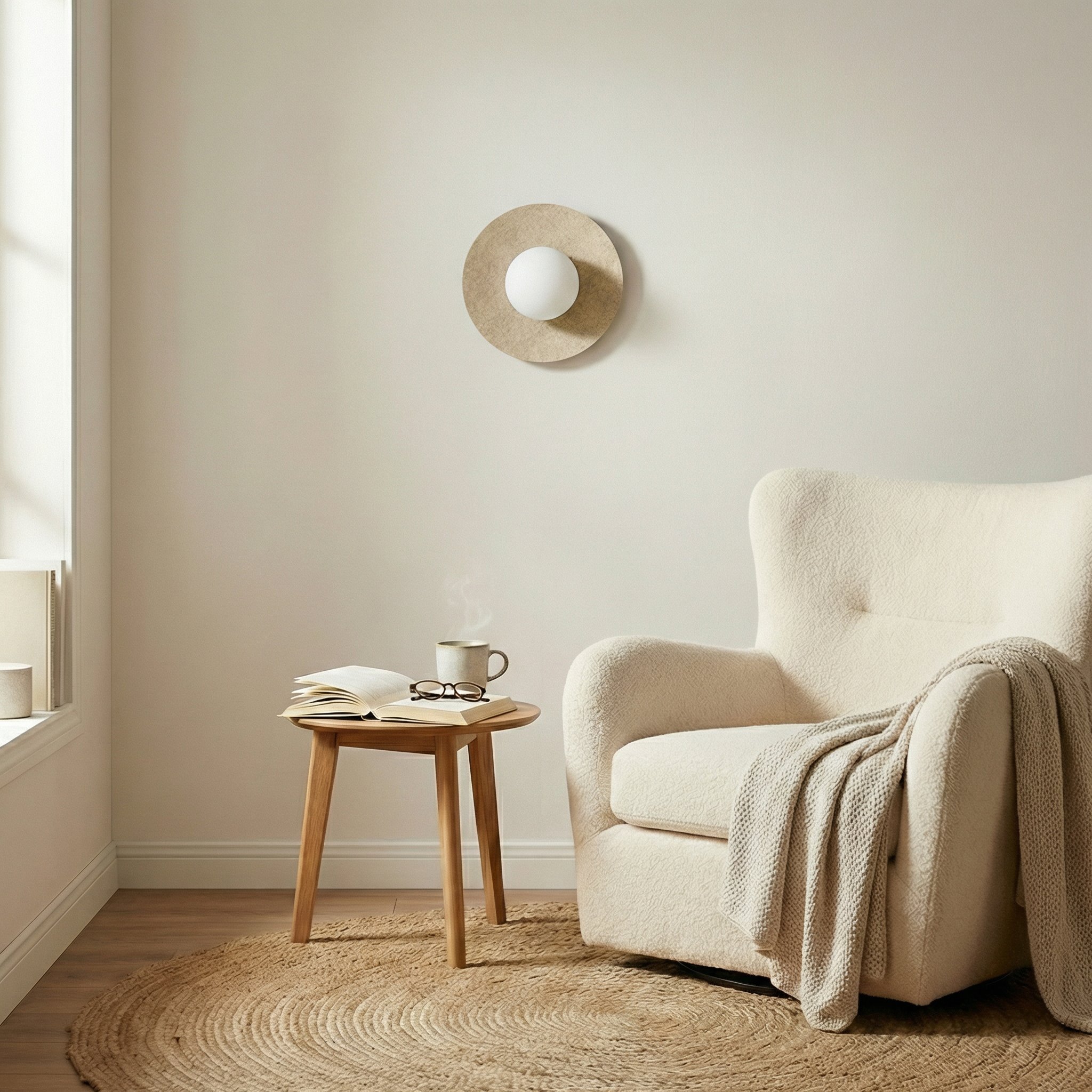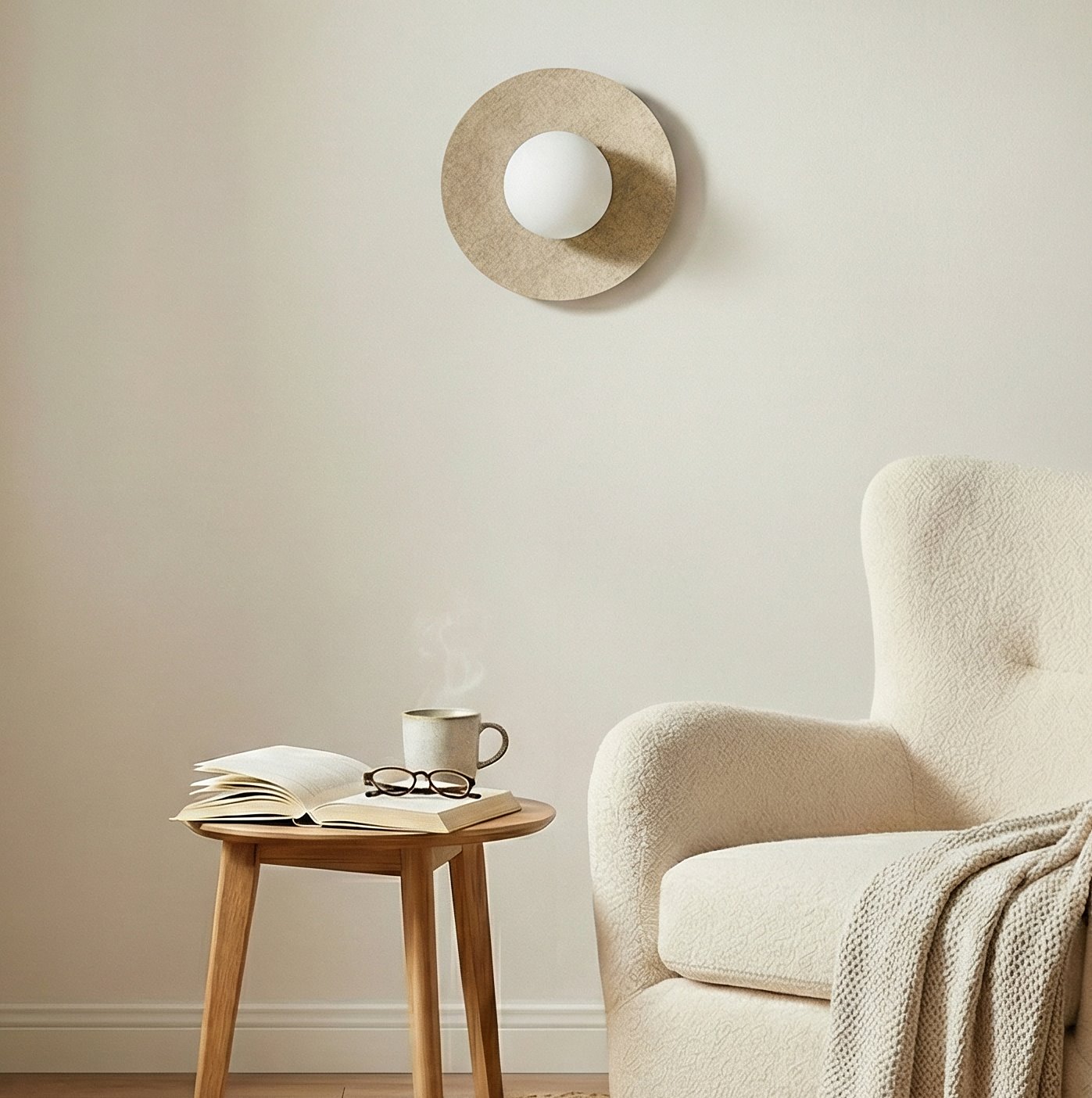 Kinkiet CALMA wprowadza organiczne ciepło do każdego wnętrza dzięki miękkiemu, zaokrąglonemu kloszowi wykonanemu z naturalnego filcu. Ta elegancka oprawa zapewnia łagodne, nastrojowe oświetlenie, a filcowe wykończenie dodaje wyrafinowanej tekstury, idealnej do sypialni, korytarzy lub przestrzeni w stylu skandynawskim.