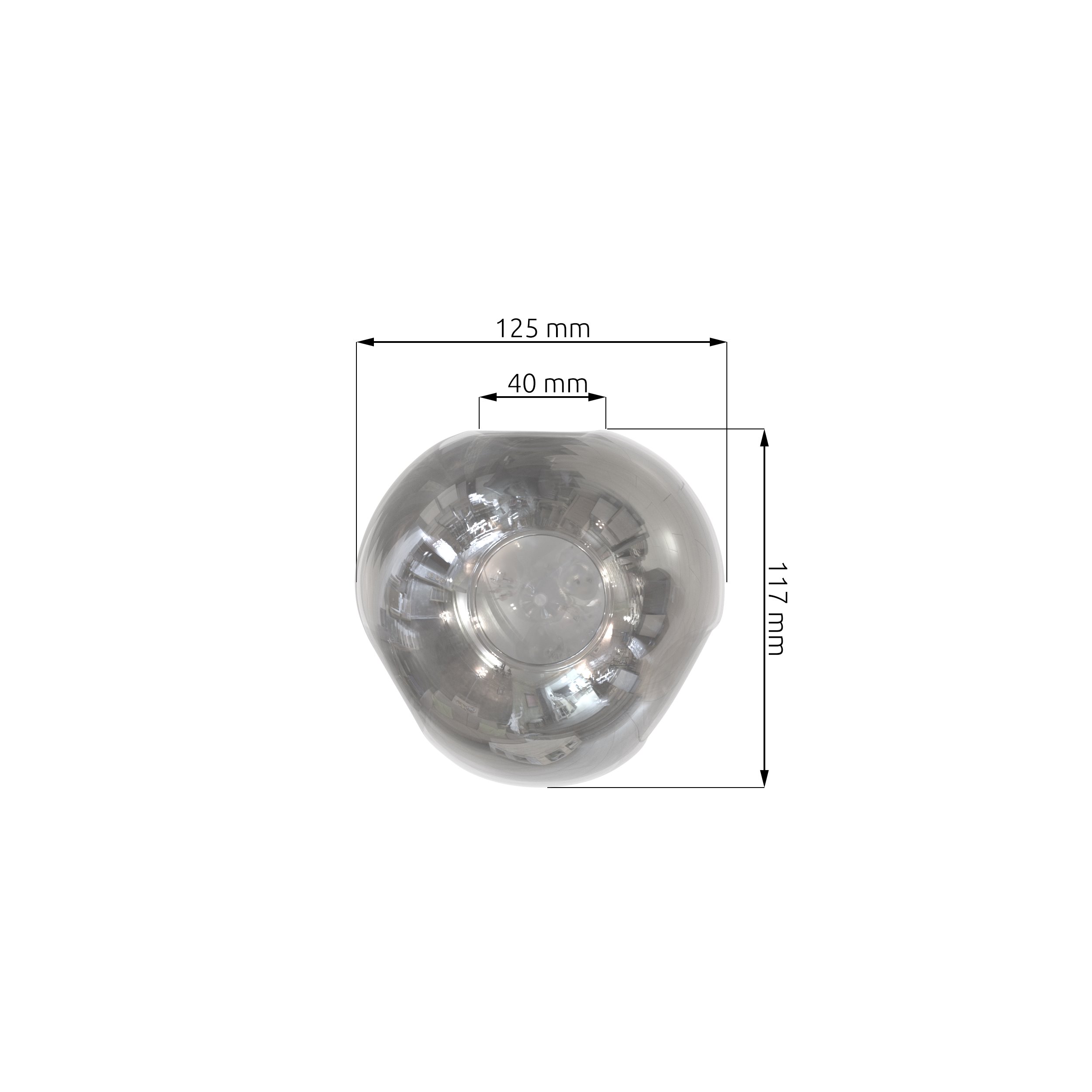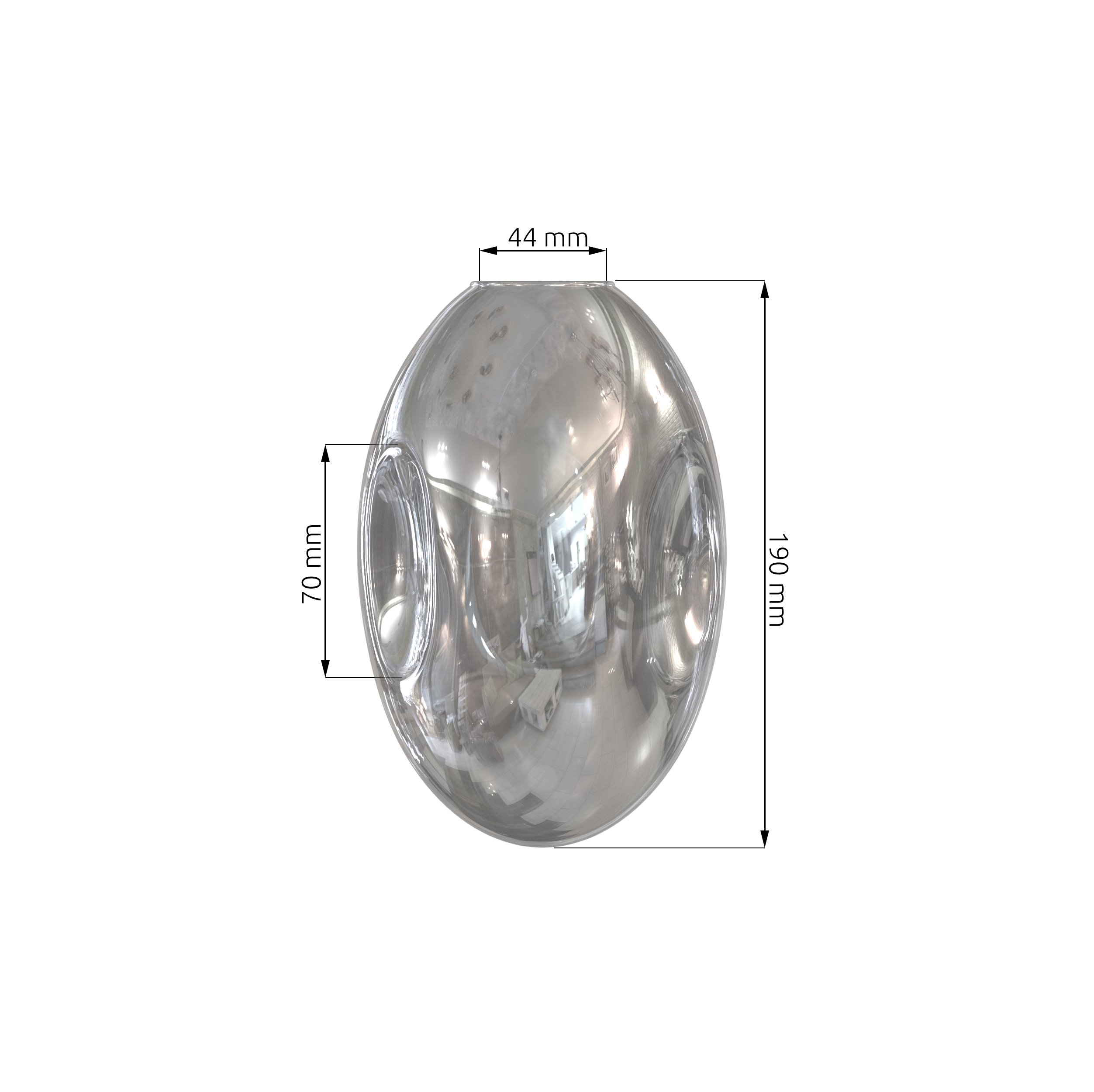 Szklany klosz do lamp Emibig o nowoczesnym, obłym kształcie, wykonany z gładkiego, półprzezroczystego szkła w kolorze grafitowym. Subtelnie rozprasza światło, tworząc przytulny nastrój.DO POBRANIA