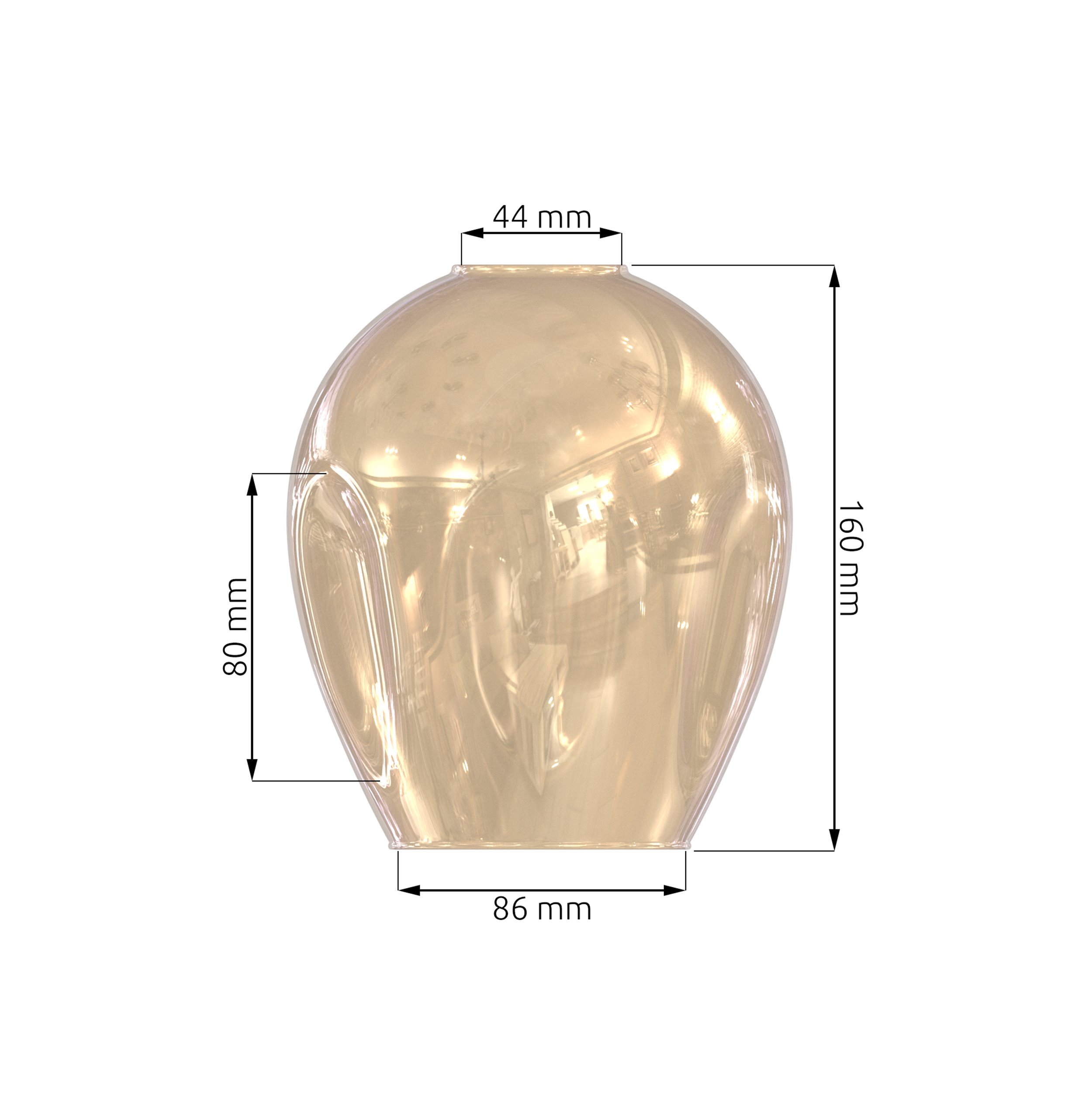 Szklany klosz do lamp Istar o nowoczesnym, obłym kształcie, wykonany z gładkiego, półprzezroczystego szkła w ciepłym, bursztynowym odcieniu. Subtelnie rozprasza światło, tworząc przytulny nastrój.DO POBRANIA