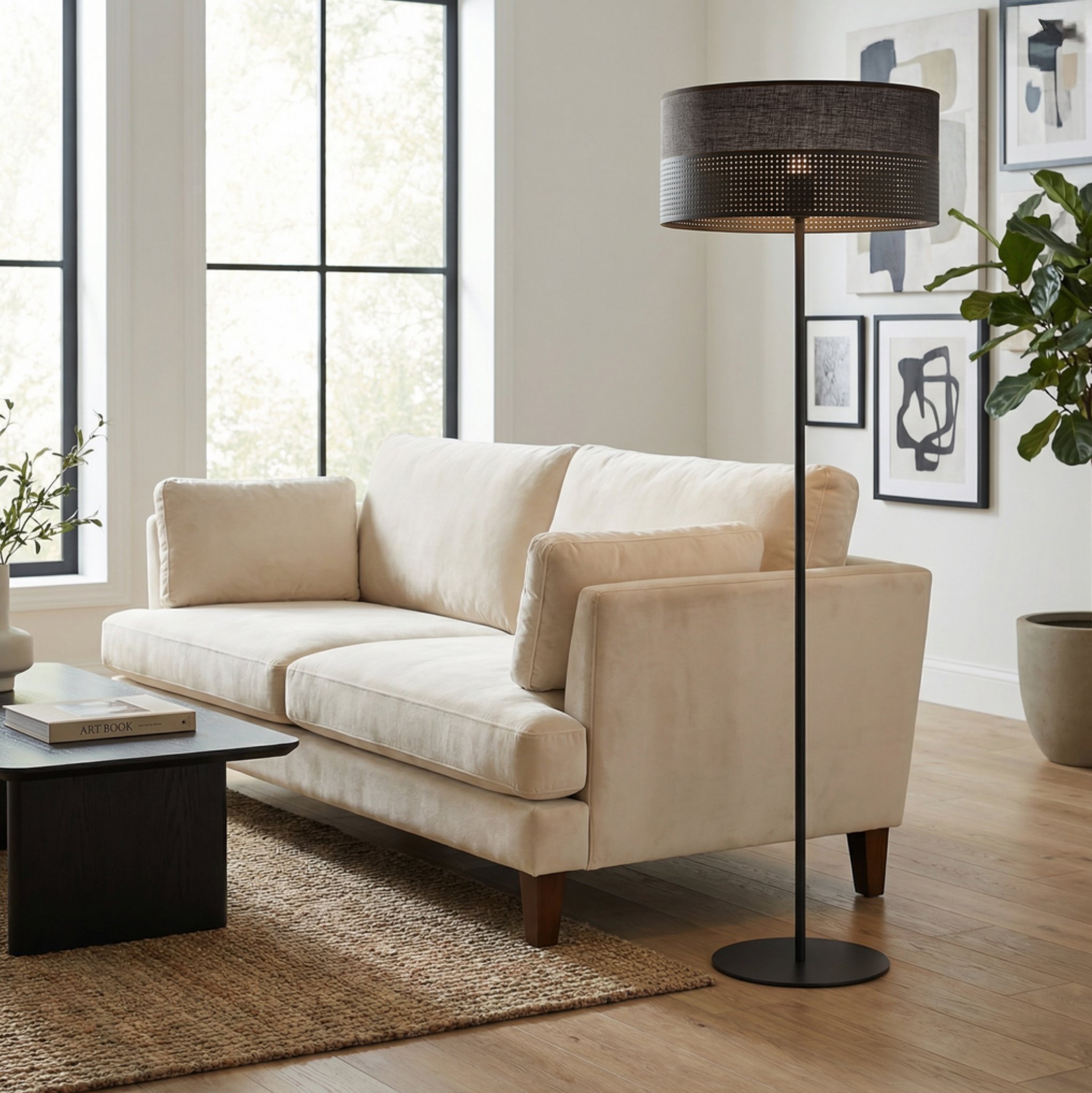 Lampa podłogowa KARBON to minimalistyczne dzieło sztuki, charakteryzujące się smukłą, wysoką cylindryczną obudową osadzoną na stabilnej, geometrycznej podstawie. Jej nowoczesna architektoniczna sylwetka zapewnia precyzyjne oświetlenie i wyrafinowany wygląd, co czyni ją idealnym wyborem do kącików do czytania, minimalistycznych salonów lub nowoczesnych biur.