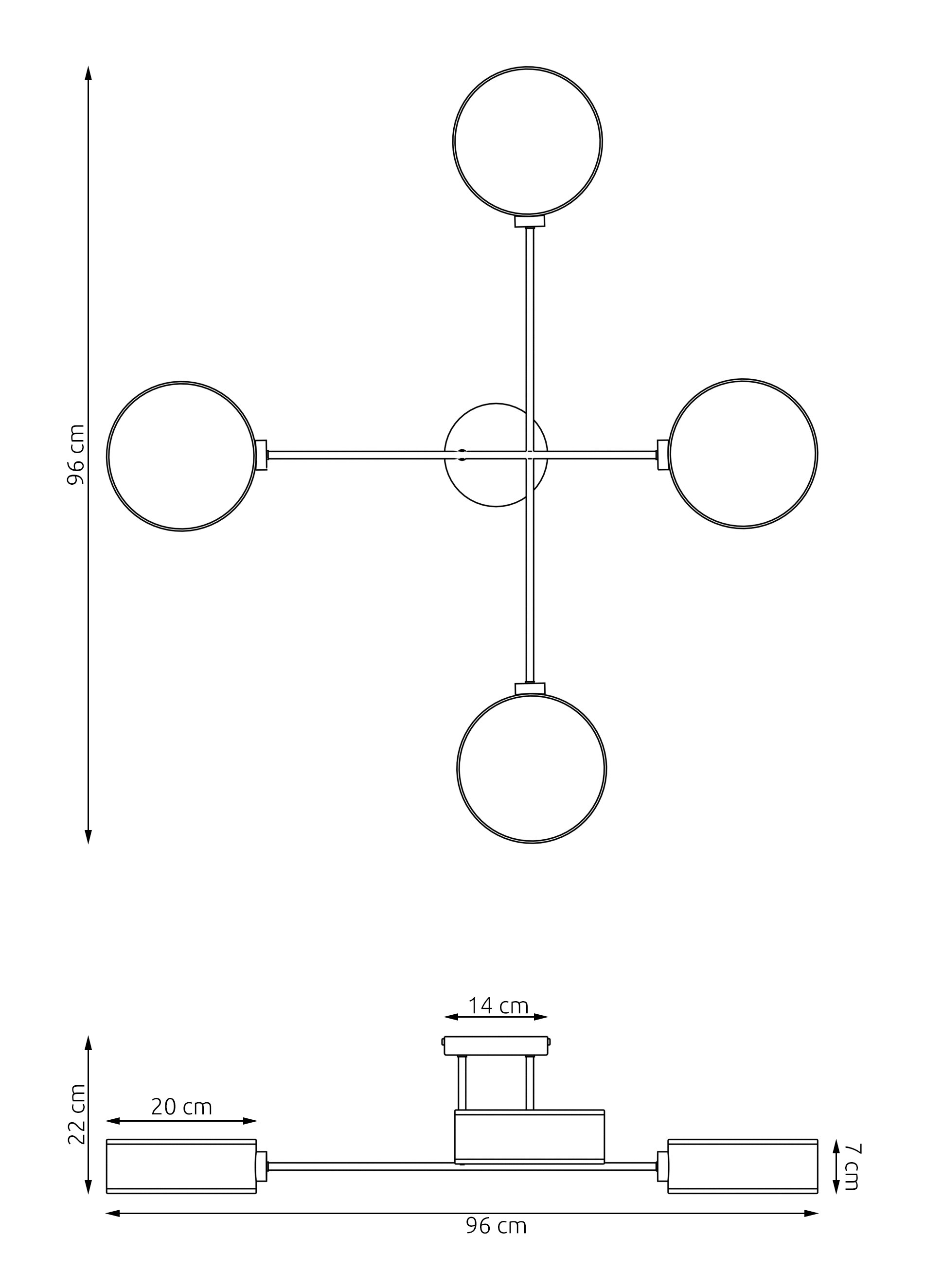 Wzbogać swoje wnętrze o stylowe oświetlenie sufitowe dzięki nowoczesnemu plafonowi. Jego minimalistyczna konstrukcja z ramionami w stylu Sputnik idealnie pasuje do wnętrz nowoczesnych i loftowych, dodając im charakteru i elegancji. To uniwersalne oświetlenie sufitowe doskonale sprawdzi się w salonie, sypialni, jadalni czy korytarzu. Ten plafon to funkcjonalny i designerski element wystroju.DO POBRANIA
