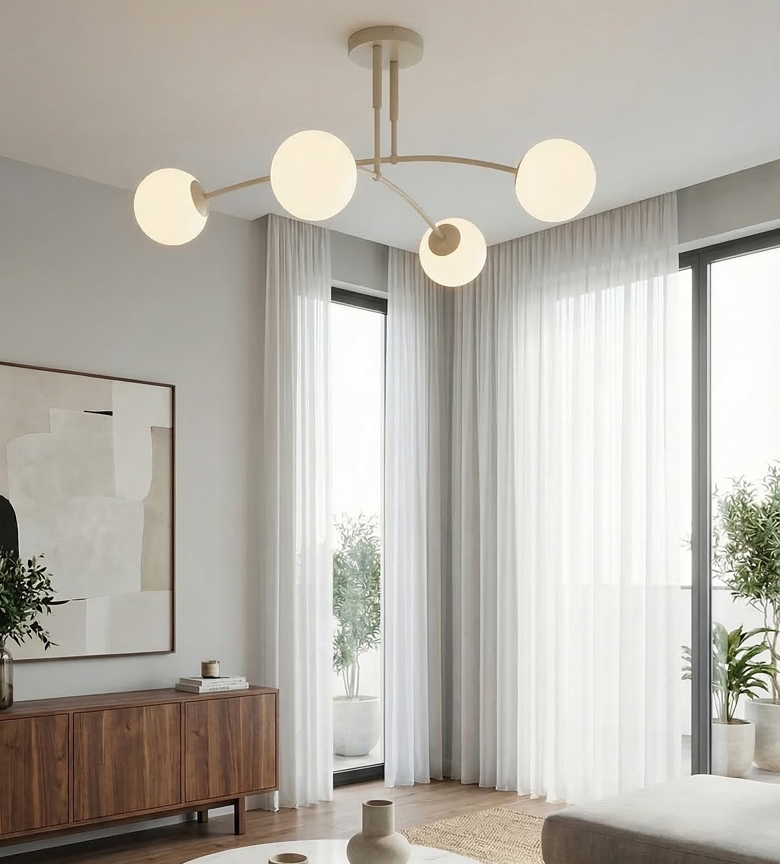 Dzięki różnym wariantom – na 2, 4 lub 6 źródeł światła – seria PREGOS pozwala dopasować lampę do wielkości i potrzeb konkretnego pomieszczenia. Możesz wybrać model subtelny i delikatny albo bardziej rozbudowany, który efektownie rozświetli całą przestrzeń.