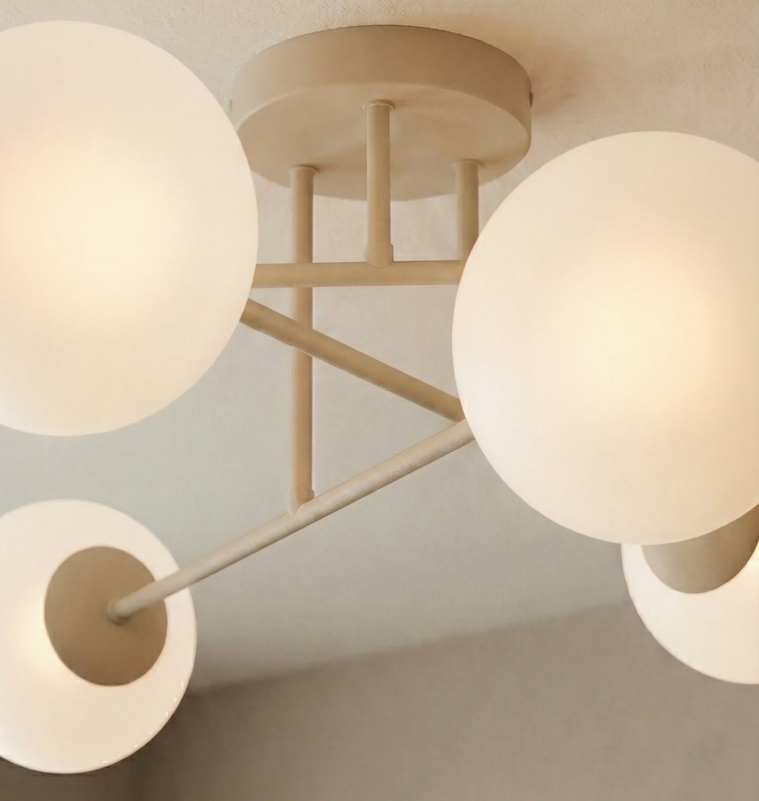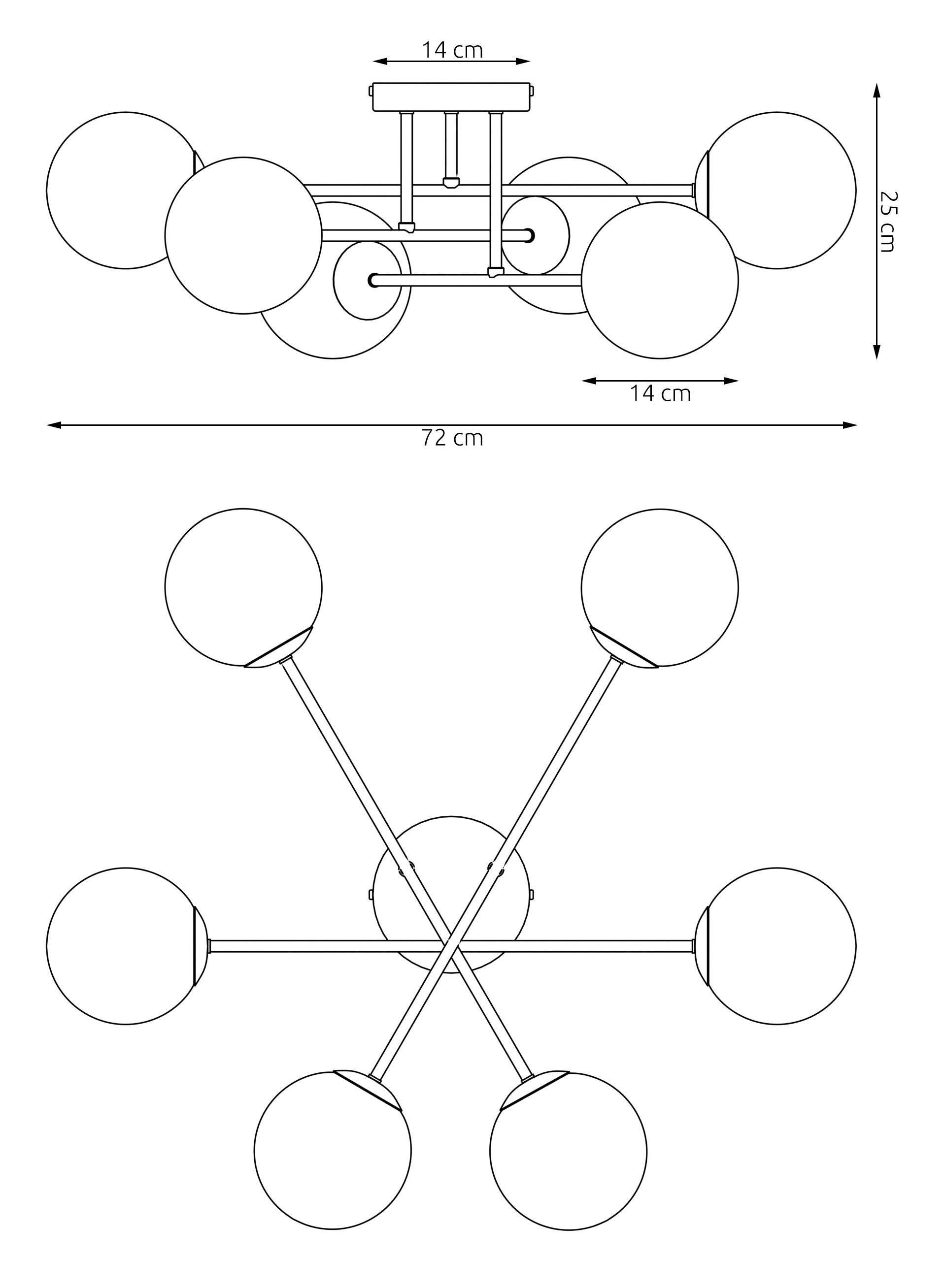 Lampa sufitowa ROMA wyróżnia się wyrafinowaną, rozłożystą strukturą ozdobioną eleganckimi szklanymi kulami. Jej symetryczny, wieloramienny design zapewnia szerokie i ciepłe oświetlenie, co czyni ją idealnym punktem centralnym do nowoczesnych salonów, jadalni lub przestronnych przedpokojów o standardowej wysokości.
