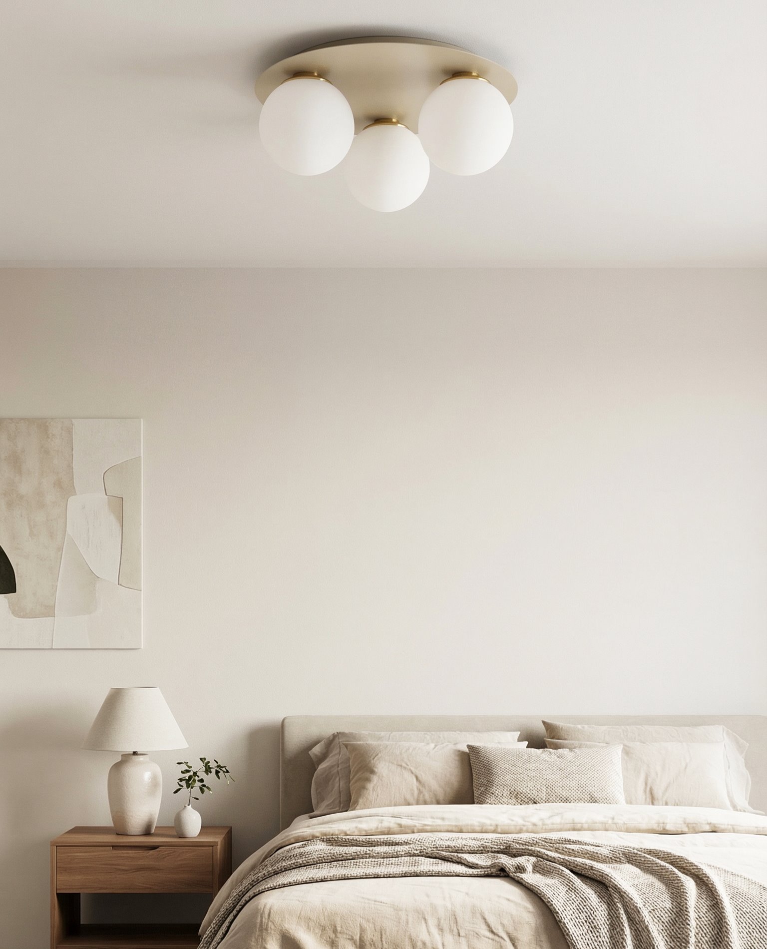 Seria SOLAR dostępna jest w trzech wariantach – na jedno, dwa lub trzy źródła światła. Dzięki temu można dopasować lampę do wielkości i funkcji pomieszczenia. Pojedynczy plafon świetnie sprawdzi się jako subtelny akcent świetlny, podwójny zapewni równowagę w codziennych aranżacjach, a potrójny efektownie oświetli większe przestrzenie, stając się mocnym punktem kompozycji.