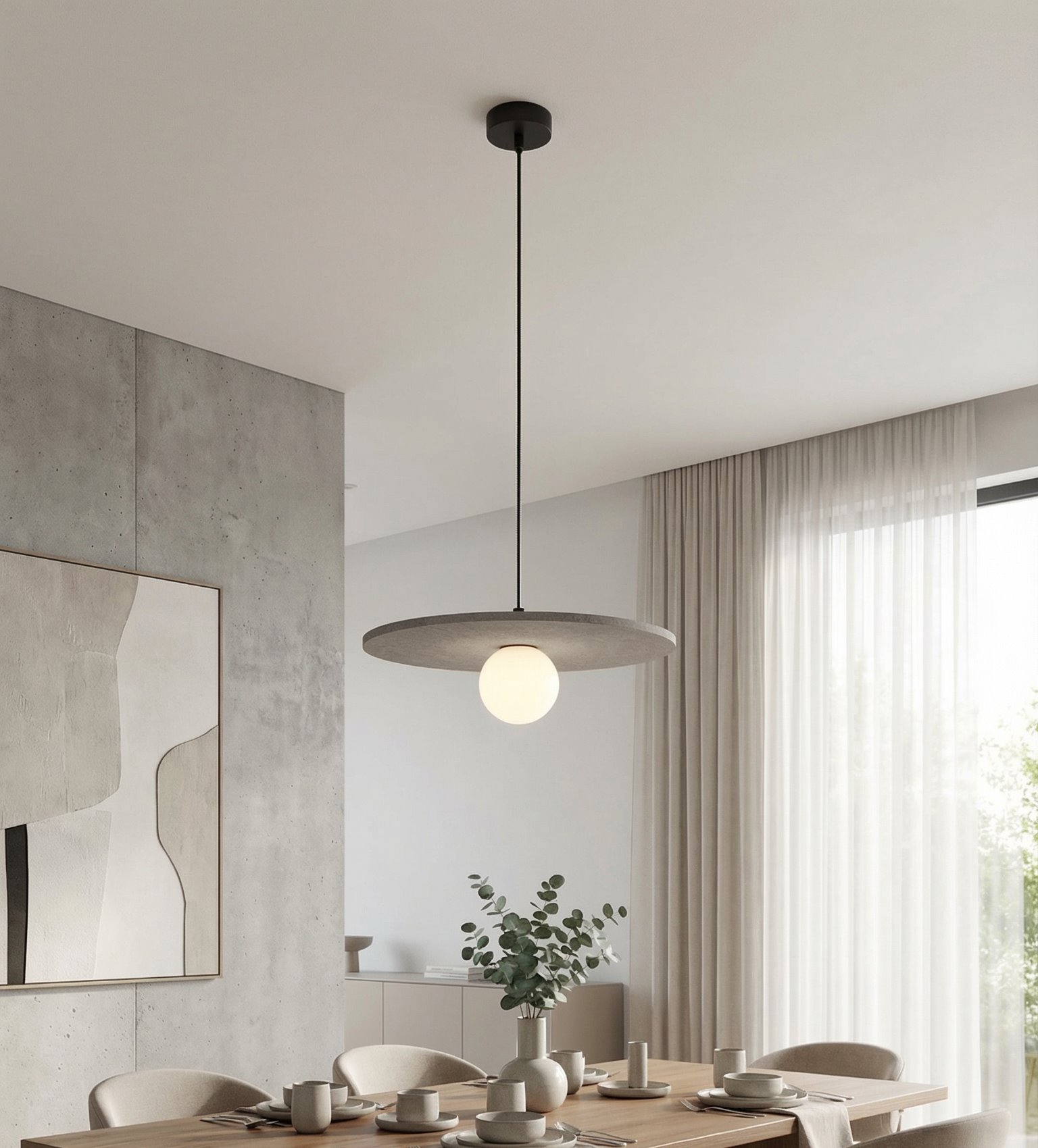 Lampa sufitowa CALMA charakteryzuje się miękką, organiczną sylwetką wykonaną z wysokiej jakości filcu, zaprojektowaną z myślą o niższych pomieszczeniach. Ten przyjemny w dotyku, poprawiający akustykę materiał zapewnia ciepłe, rozproszone światło, tworząc spokojną i przytulną atmosferę w nowoczesnych sypialniach, salonach Scandi lub minimalistycznych biurach.