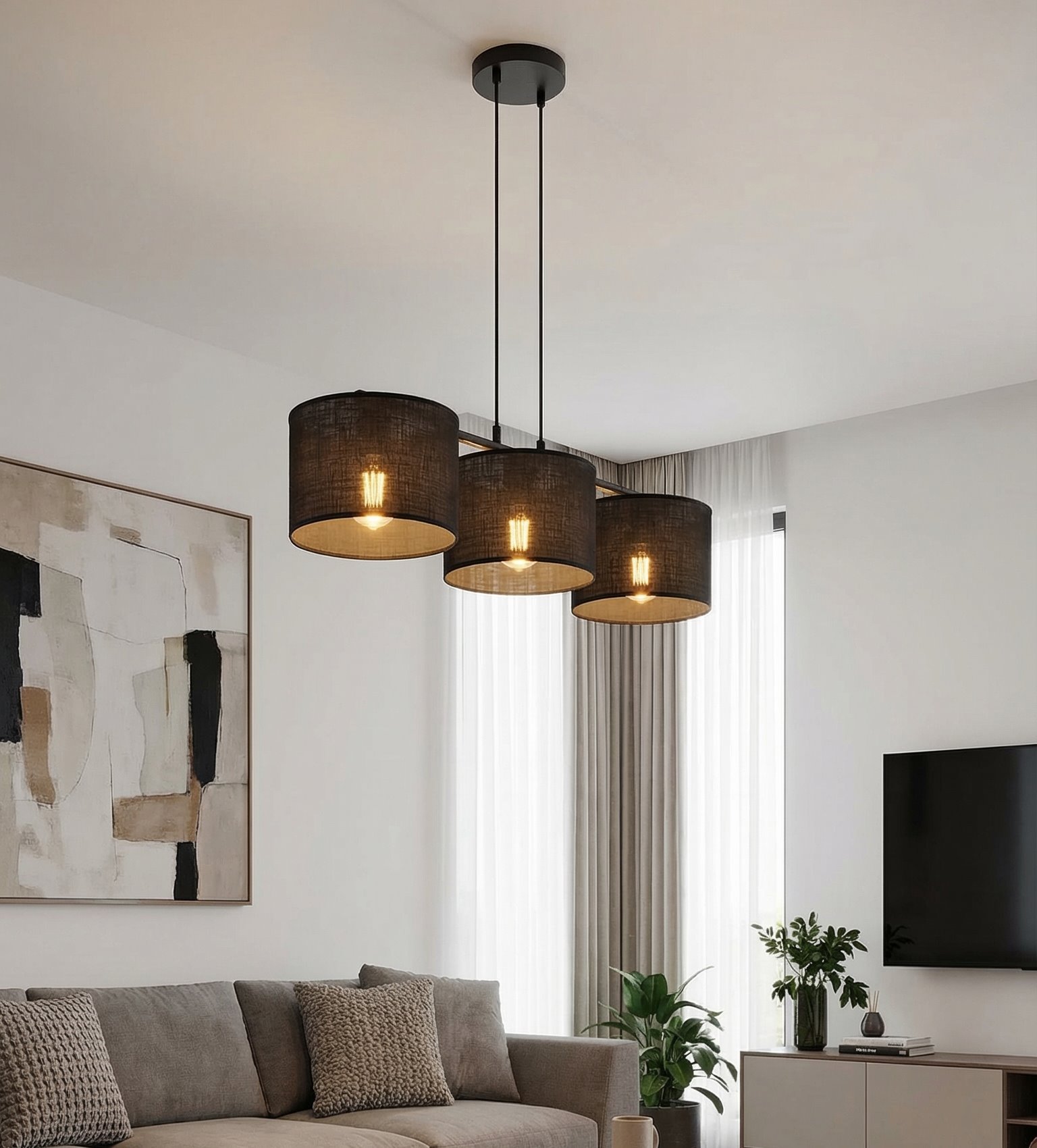 Lampa wisząca ECO 3 BLACK klasyczna, abażur, czarna