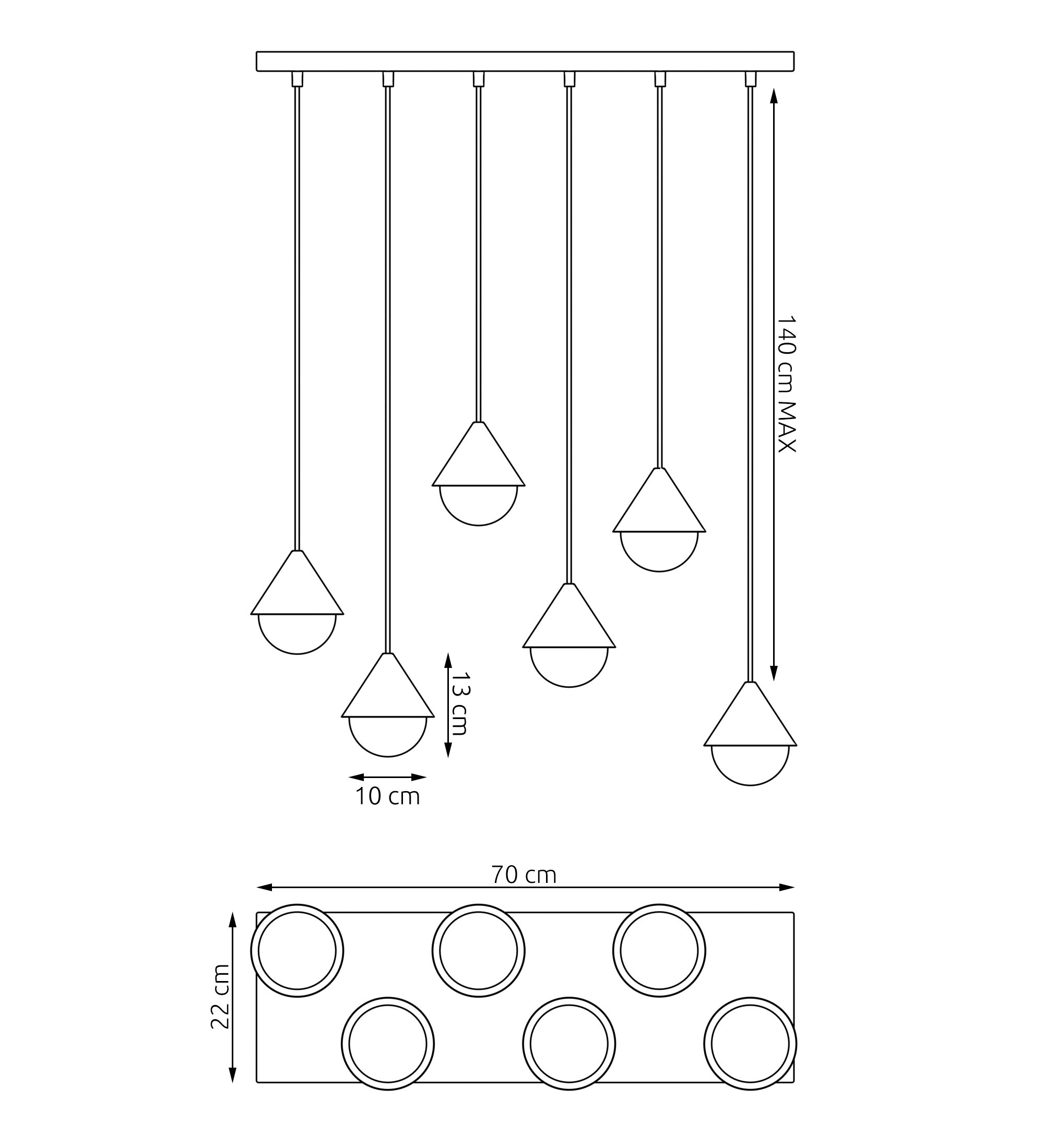 Lampa wisząca GIRO 6 BL WHITE nowoczesna, czarna biała metal