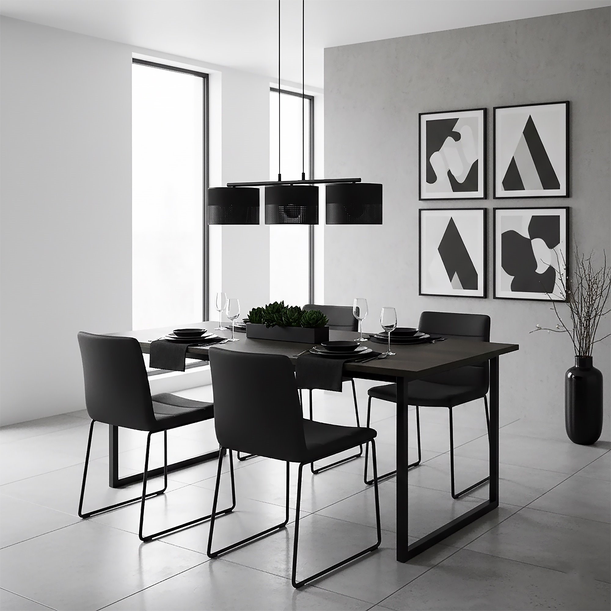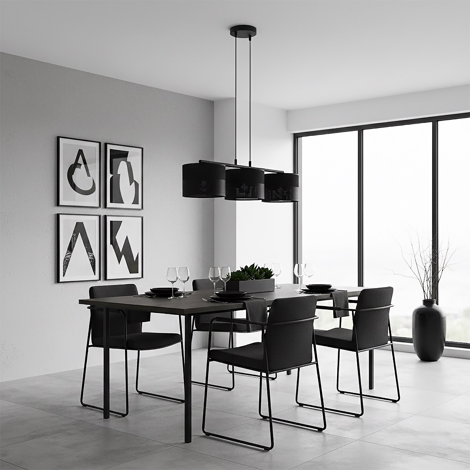 Lampa wisząca KARBON 3 BLACK klasyczna, abażur, czarna