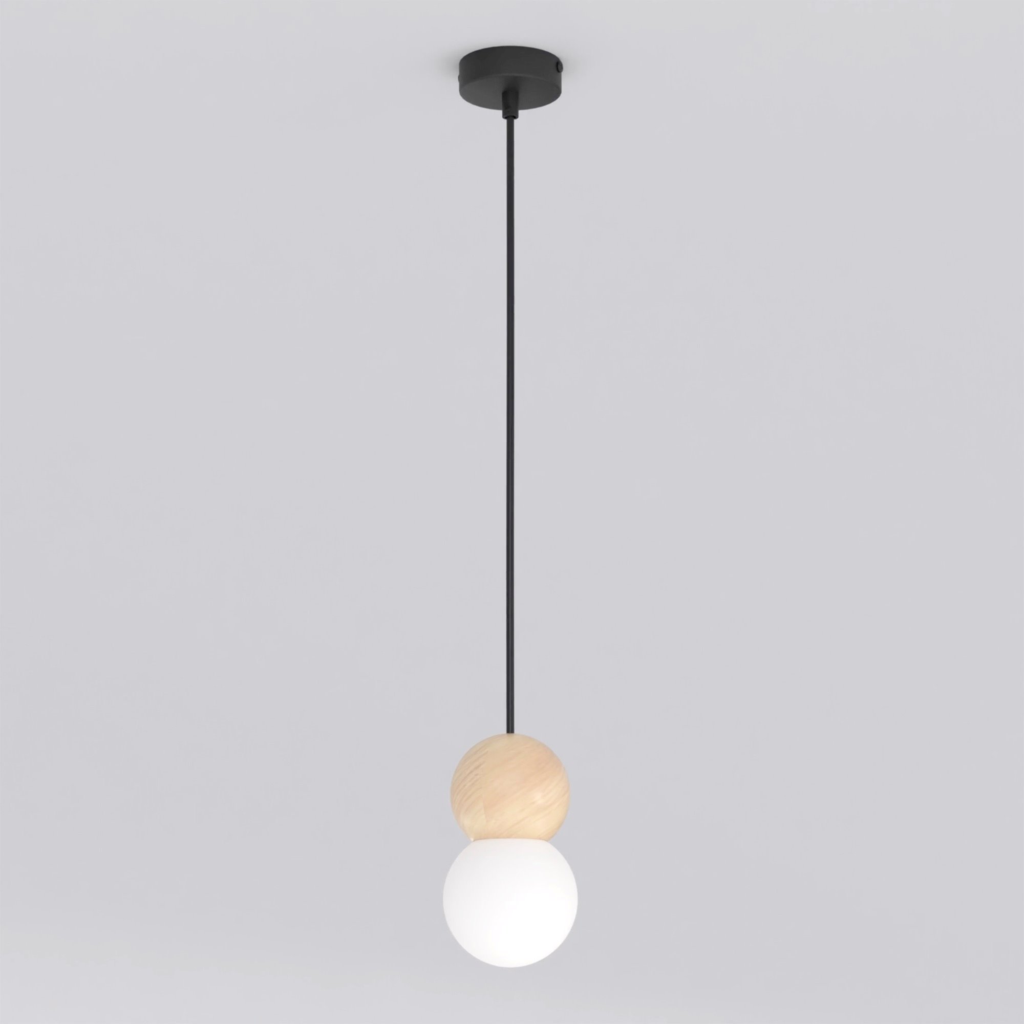 Lampa wisząca LOOP 1 BLACK nowoczesna, czarna, drewno, klosz