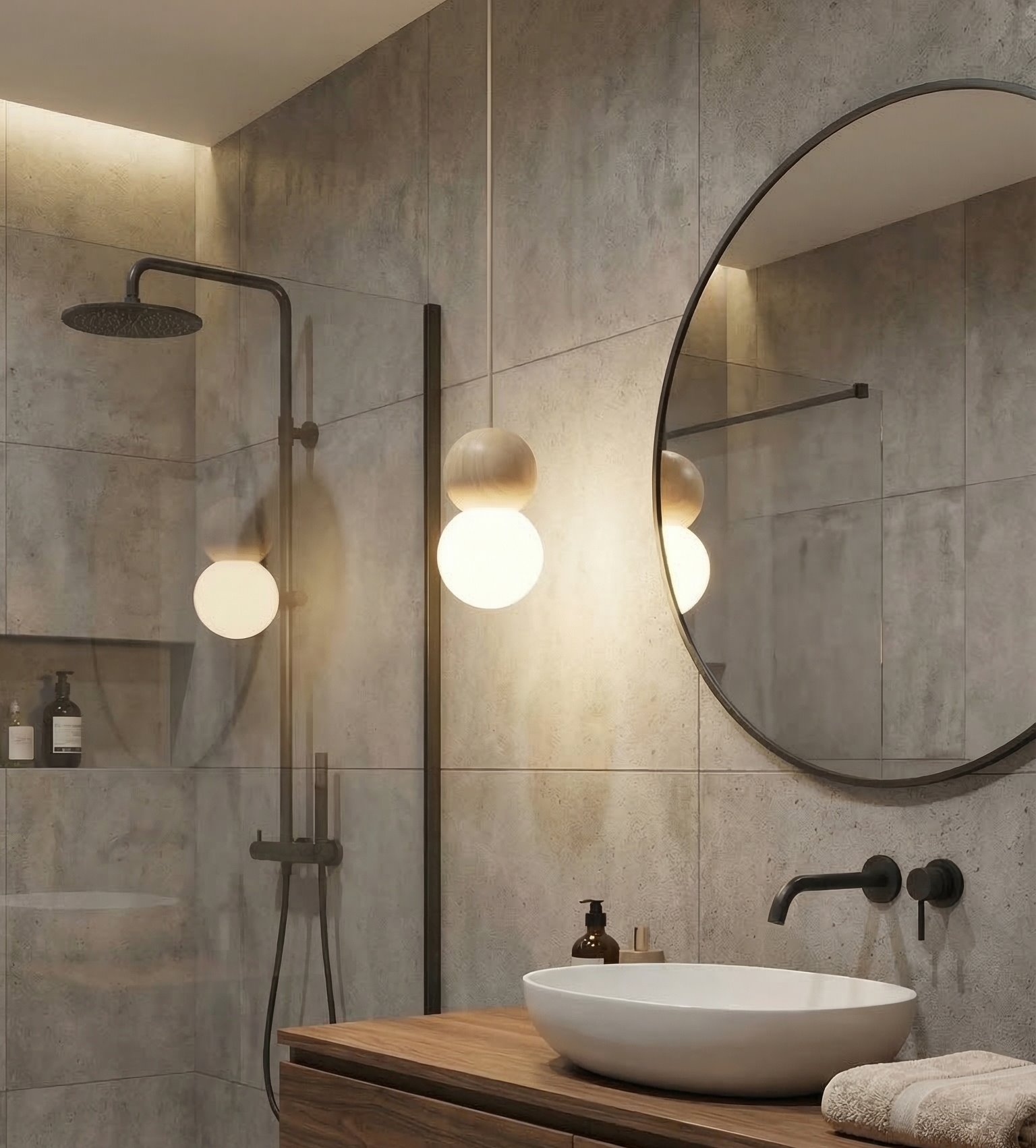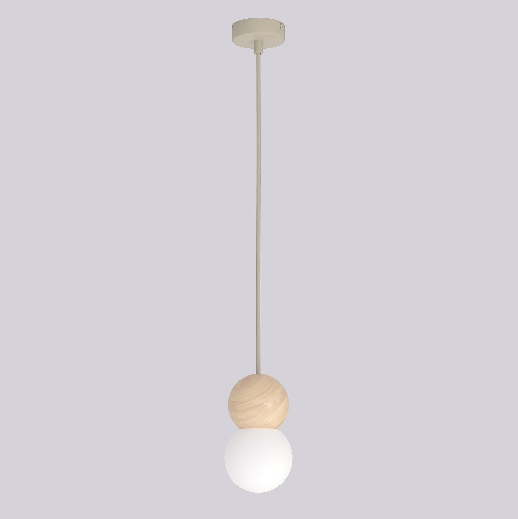 Lampa wisząca LOOP 1 MOKKA nowoczesna, beż, drewno, klosz