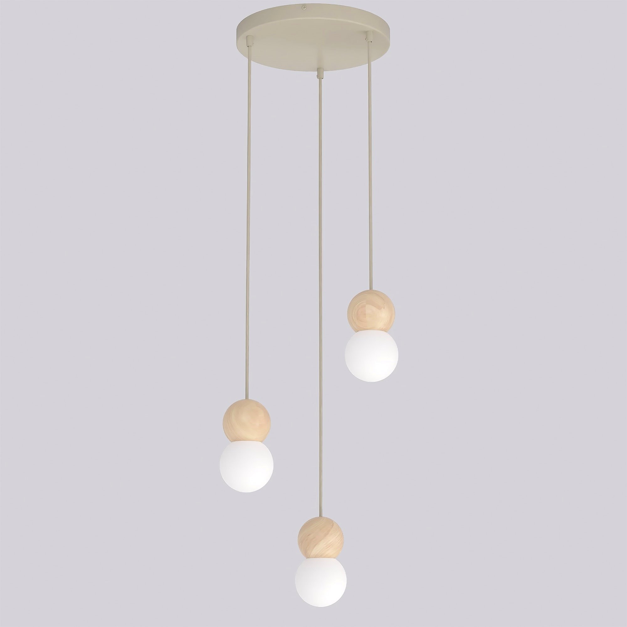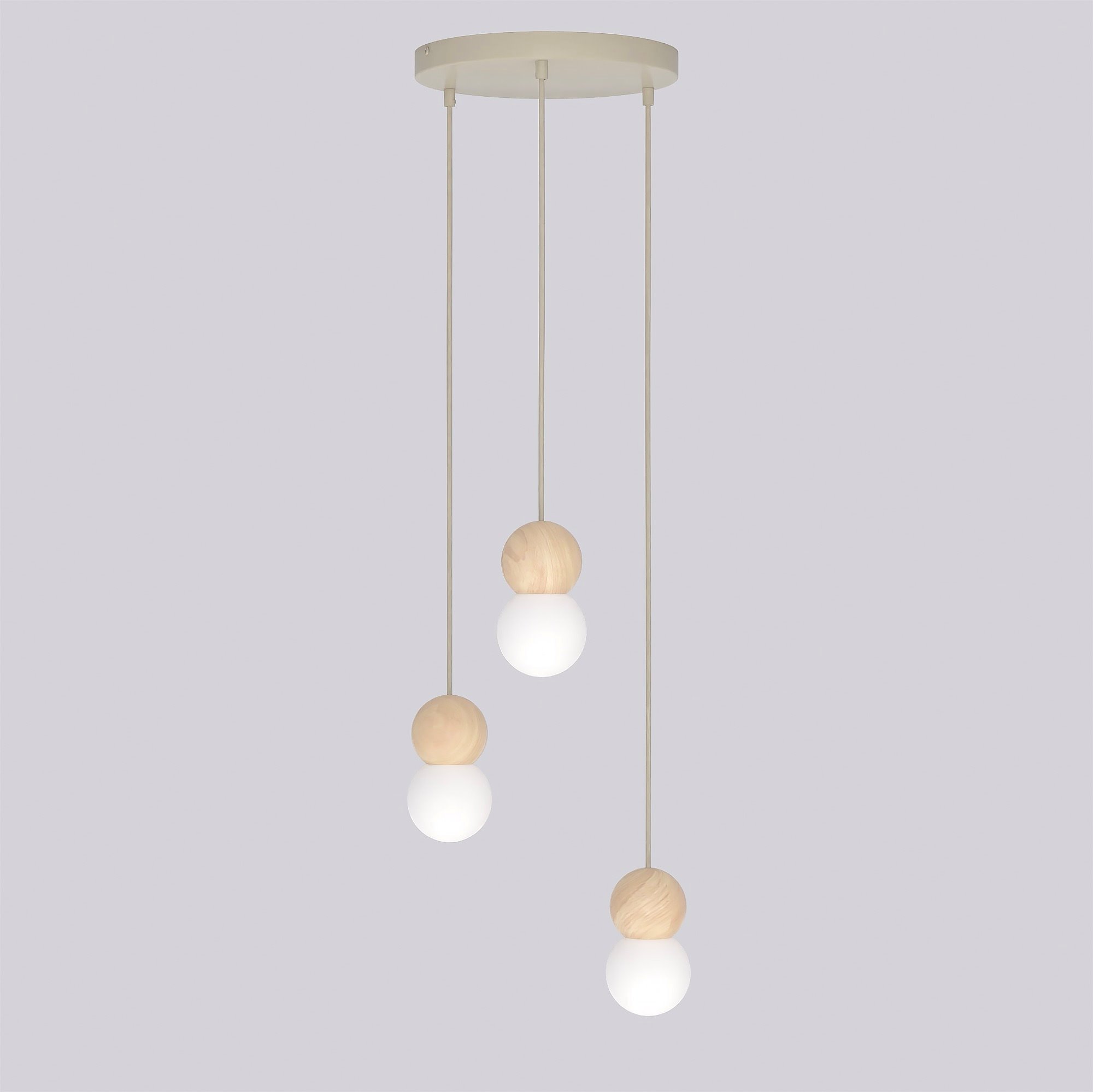Lampa wisząca LOOP 3 MOKKA nowoczesna, beż, drewno, klosz