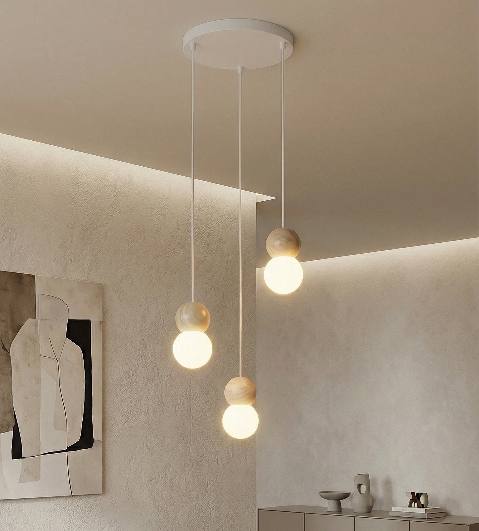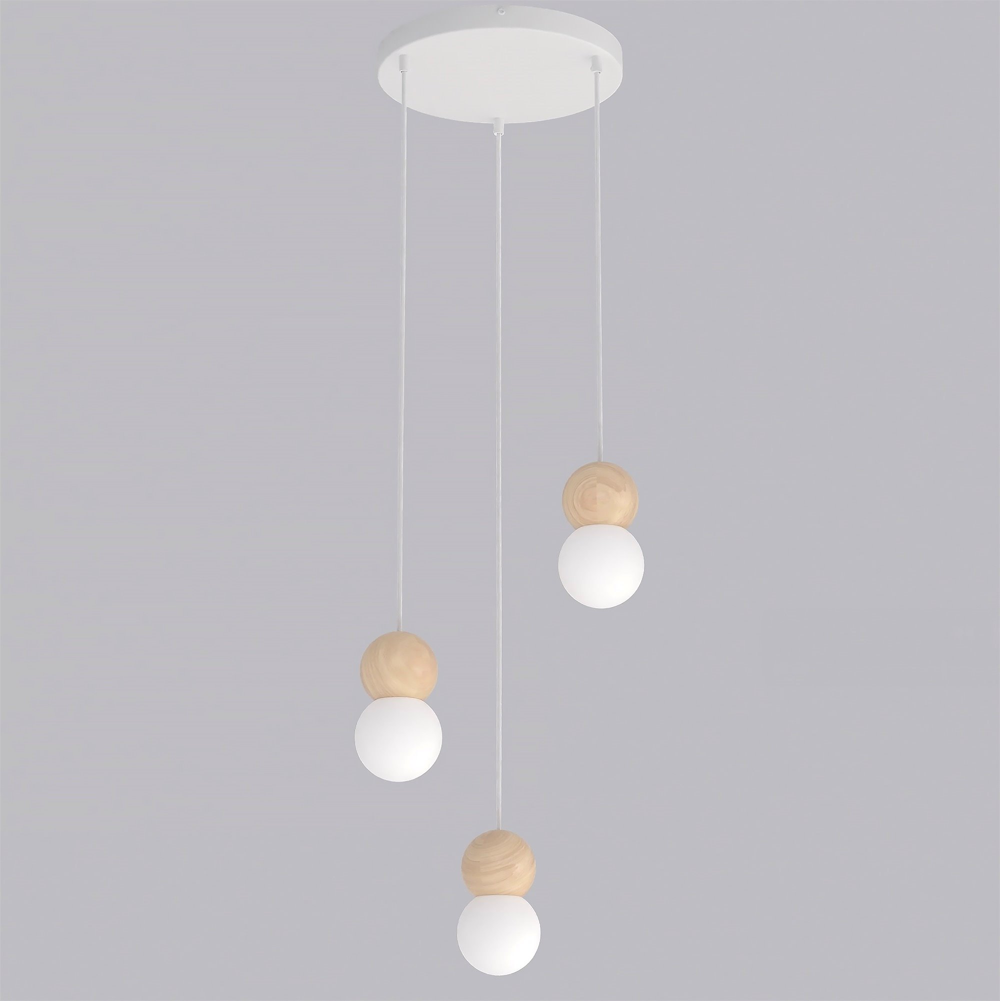 Lampa wisząca LOOP 3 WHITE nowoczesna, biała, drewno, klosz