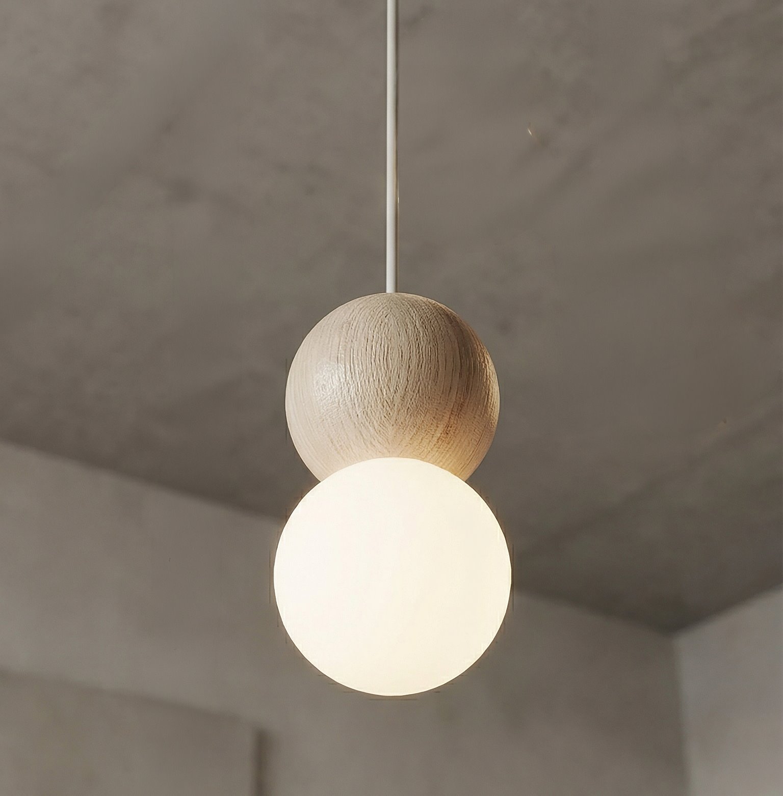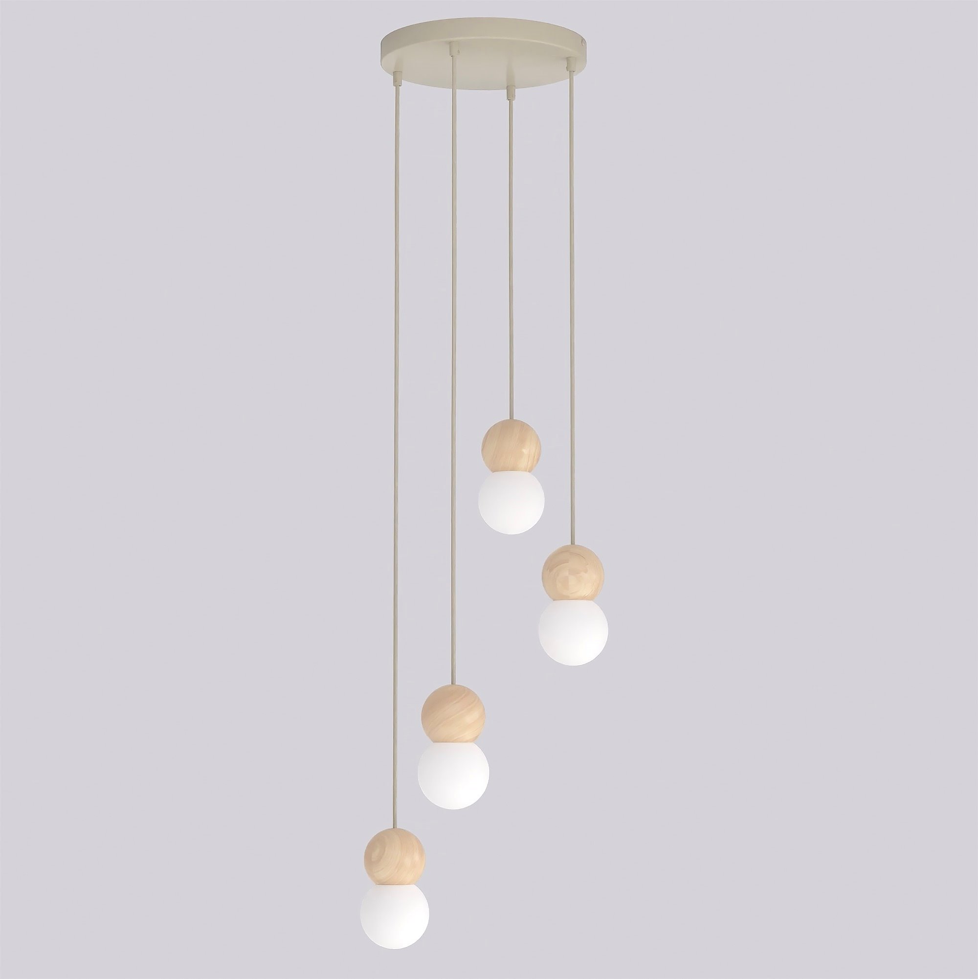 Lampa wisząca LOOP 4 MOKKA nowoczesna, beż, drewno, klosz