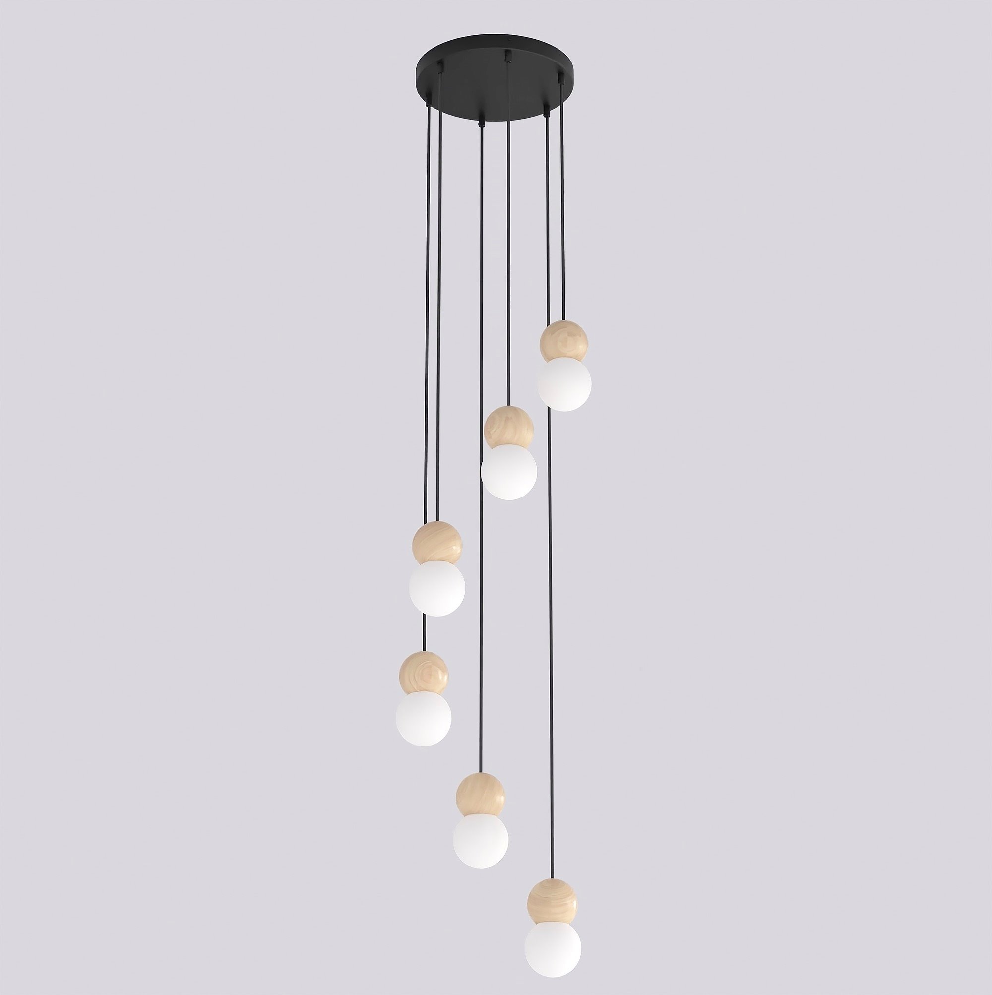Lampa wisząca LOOP 6 BLACK nowoczesna, czarna, drewno, klosz