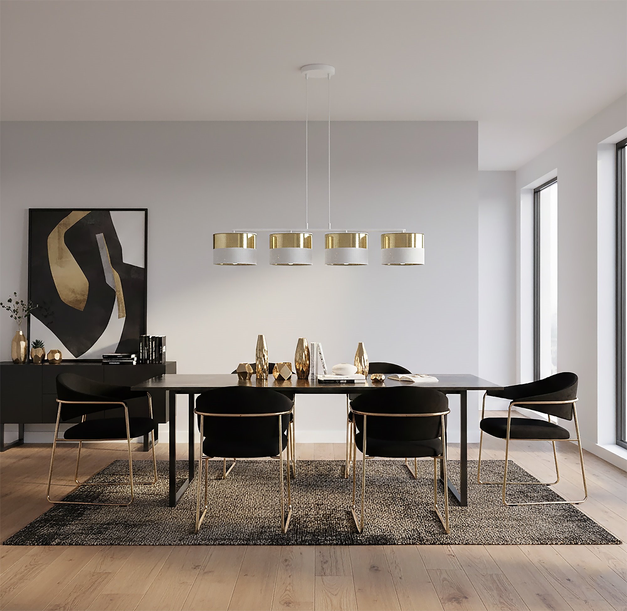 Lampa wisząca LUX 4 WH GOLD klasyczna, abażur, biały, złoty