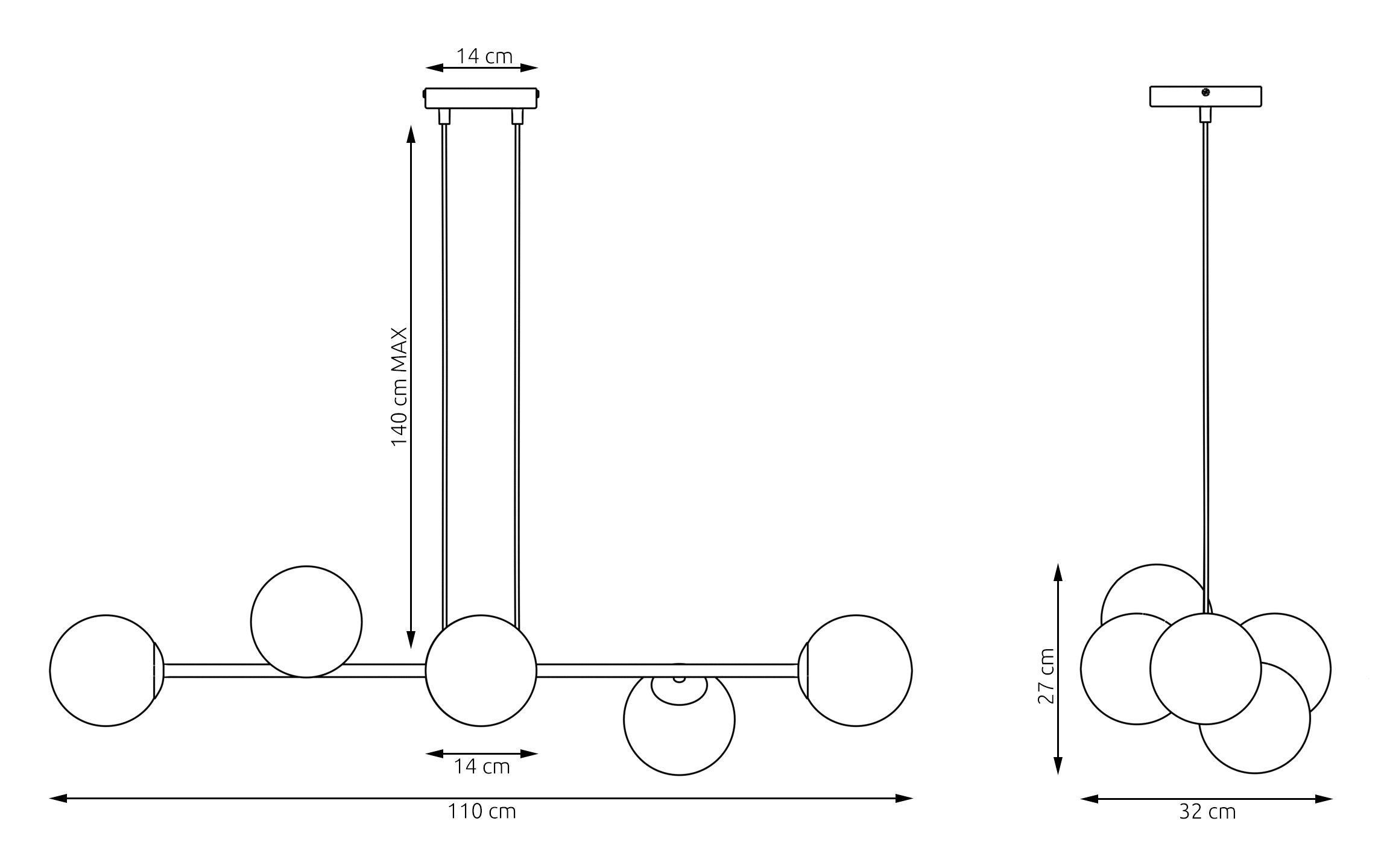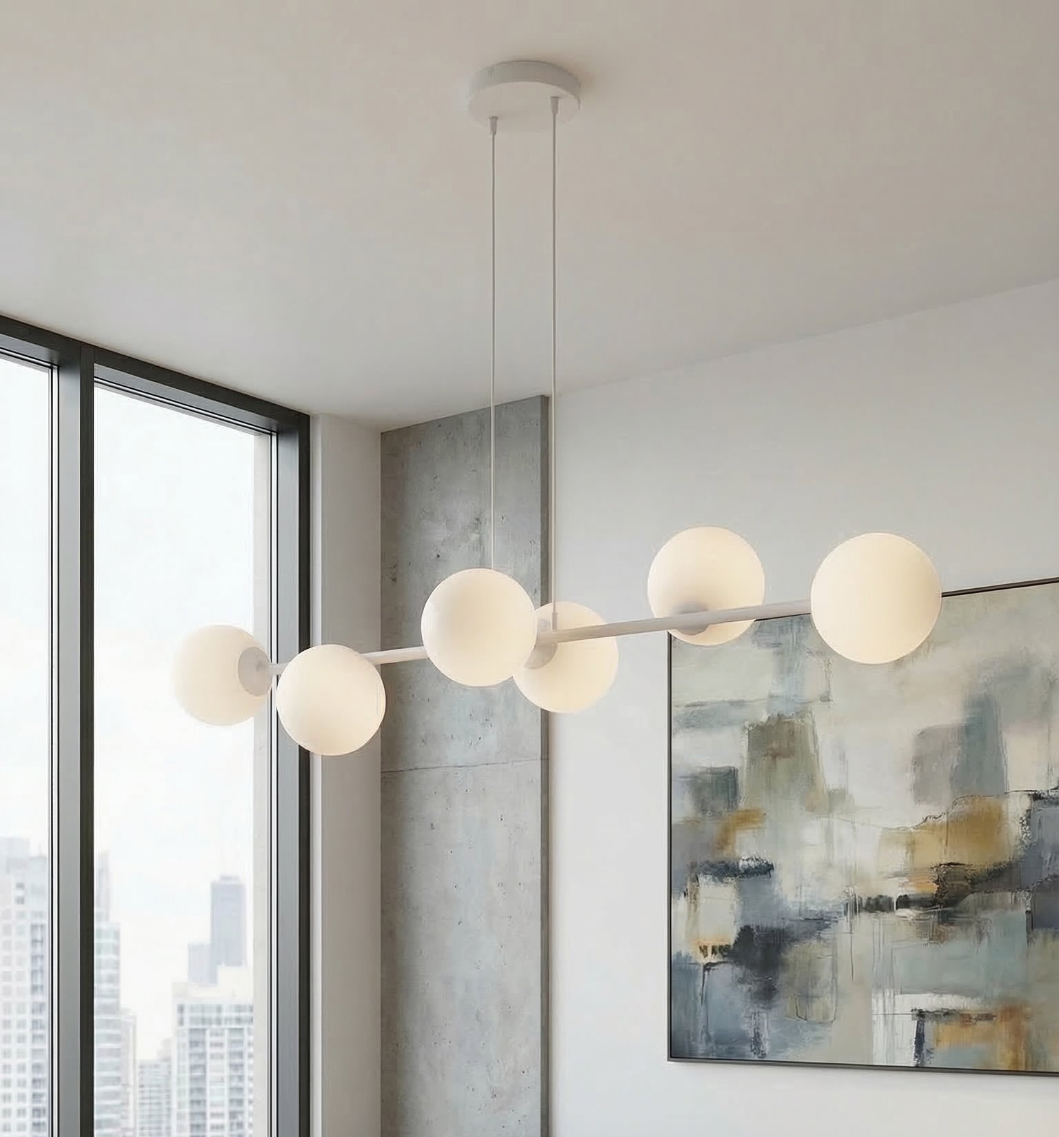 Lampa wisząca MAGNUS 6 GRAY OPAL nowoczesna, klosz, szara