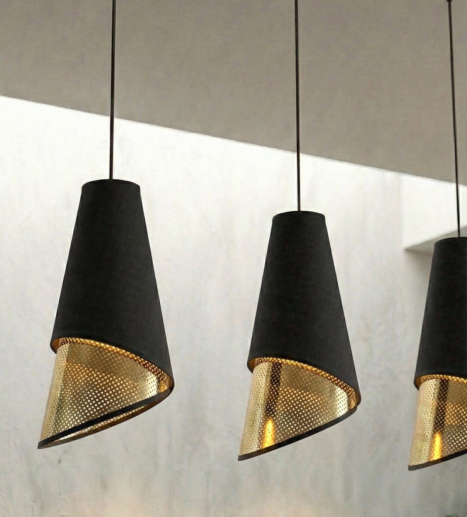 Lampa wisząca MODA to połączenie minimalistycznej geometrii z industrialnym detalem. Dwuwarstwowy klosz z perforowanej stali zapewnia nastrojowe rozproszenie światła, tworząc nowoczesny akcent architektoniczny idealny do salonu, jadalni lub surowych, loftowych wnętrz.