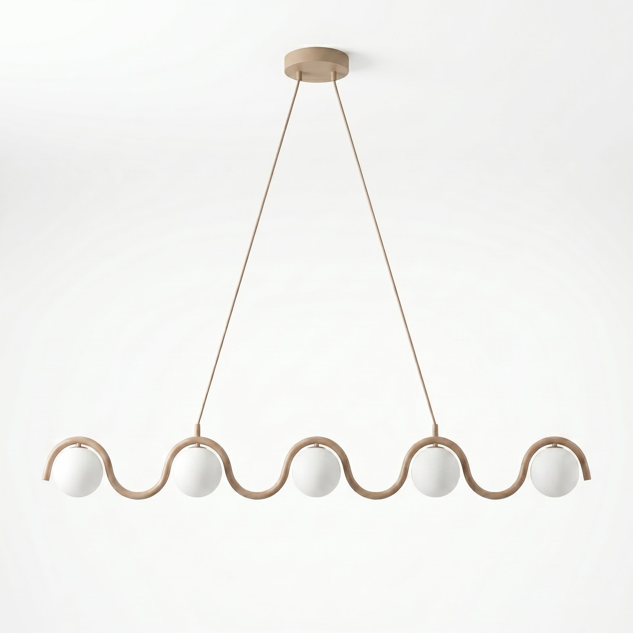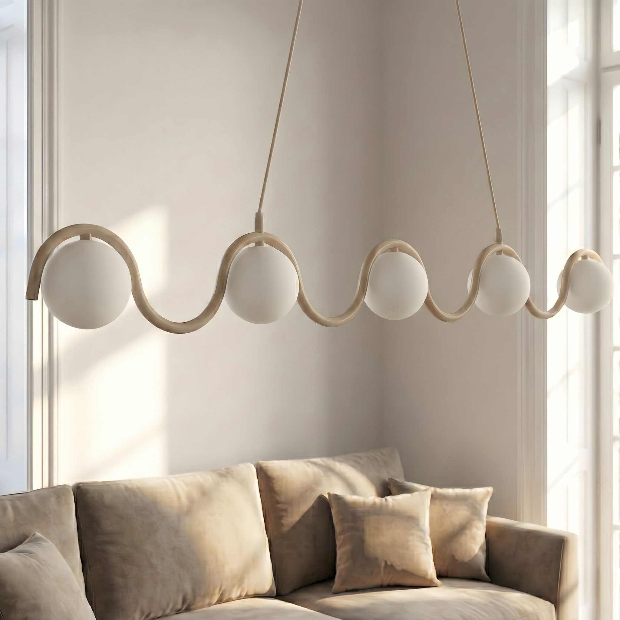 Wnieś do swojego wnętrza artystyczny styl dzięki designerskiej lampie wiszącej. Jej podłużny, falisty kształt sprawia, że staje się ona centralnym punktem każdej aranżacji. To uniwersalne oświetlenie sufitowe doskonale sprawdzi się nad stołem w jadalni lub nad wyspą kuchenną, łącząc w sobie oryginalny design z funkcjonalnością.DO POBRANIA