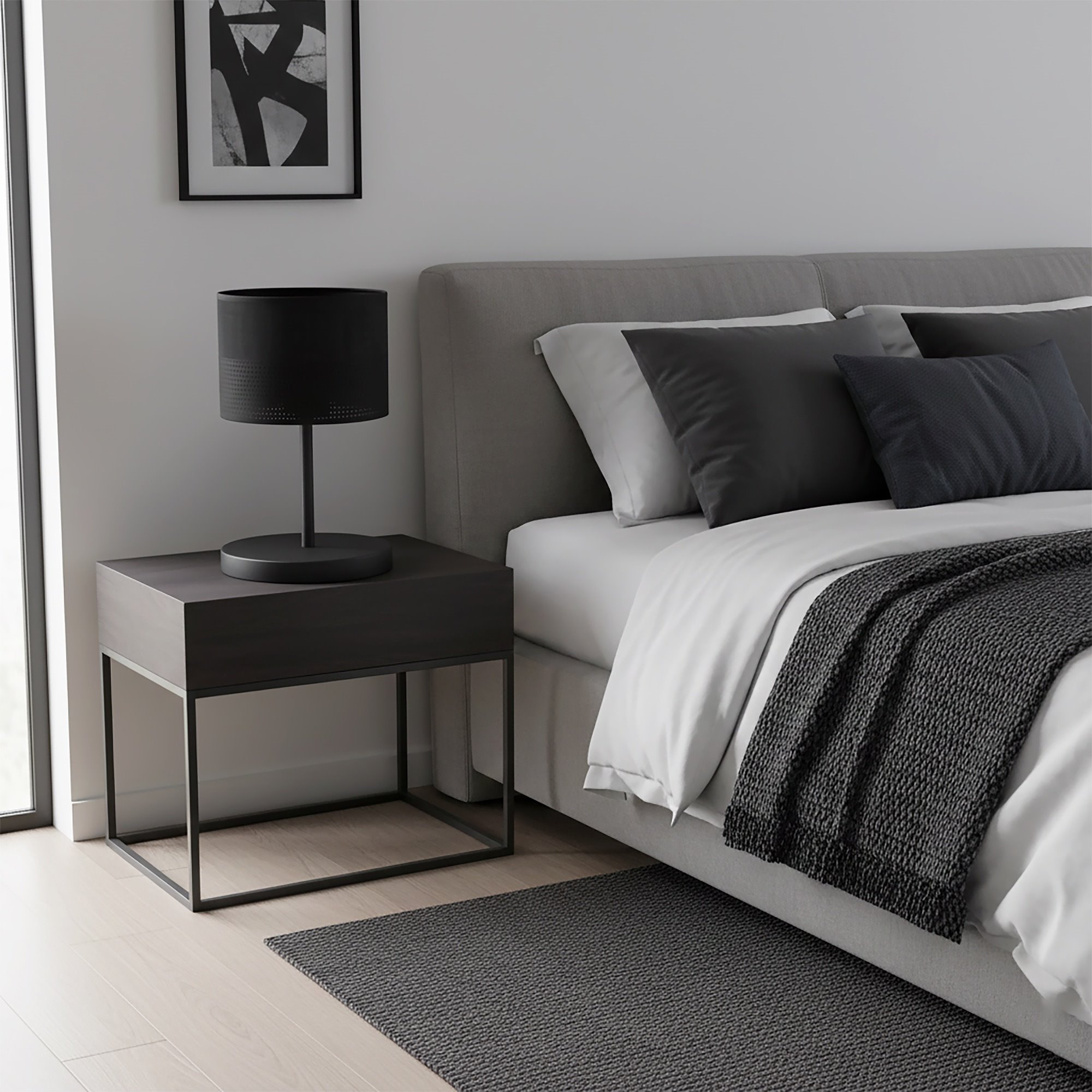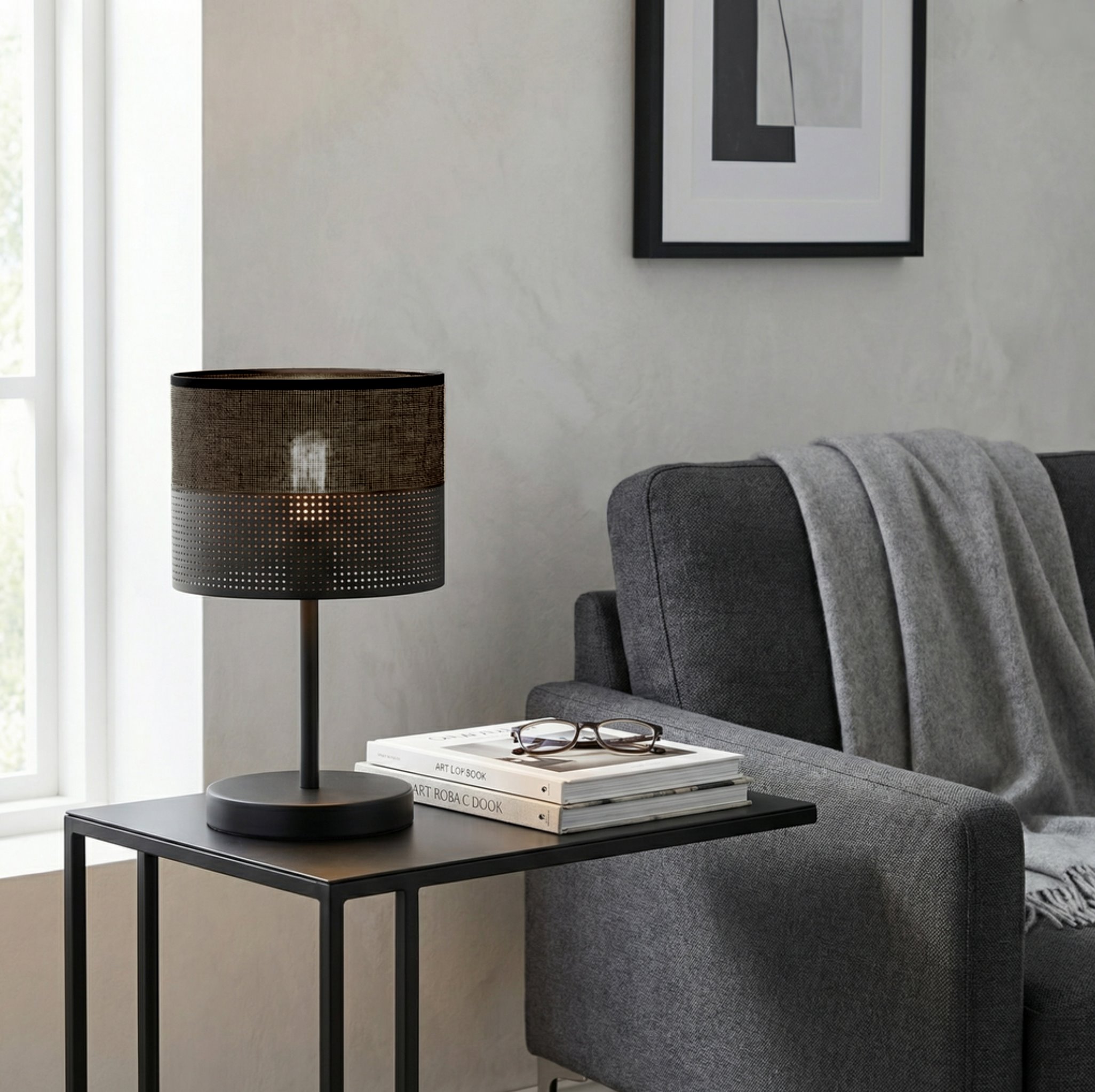 Lampka nocna KARBON LN1 BLACK abażur, czarna, klasyczna